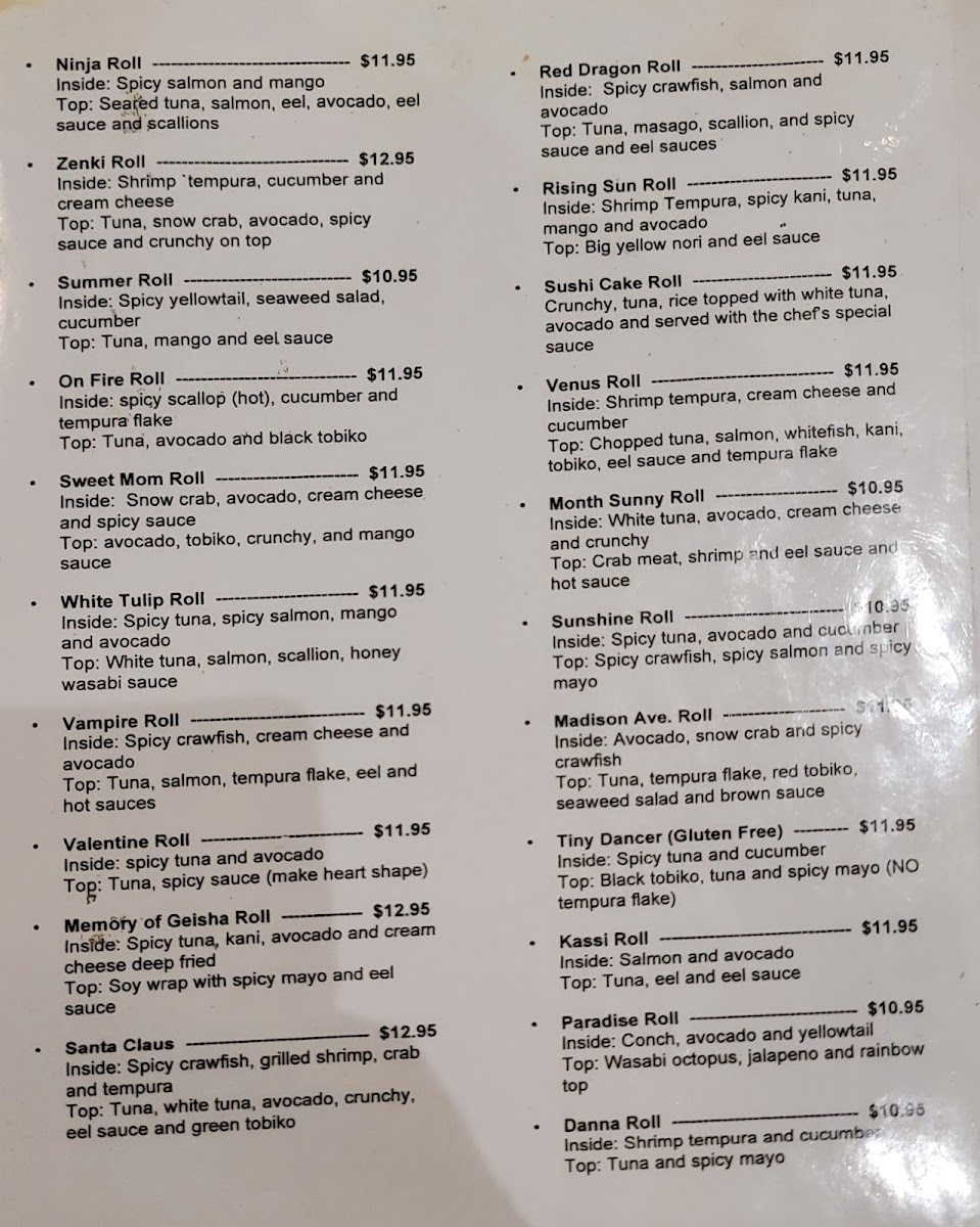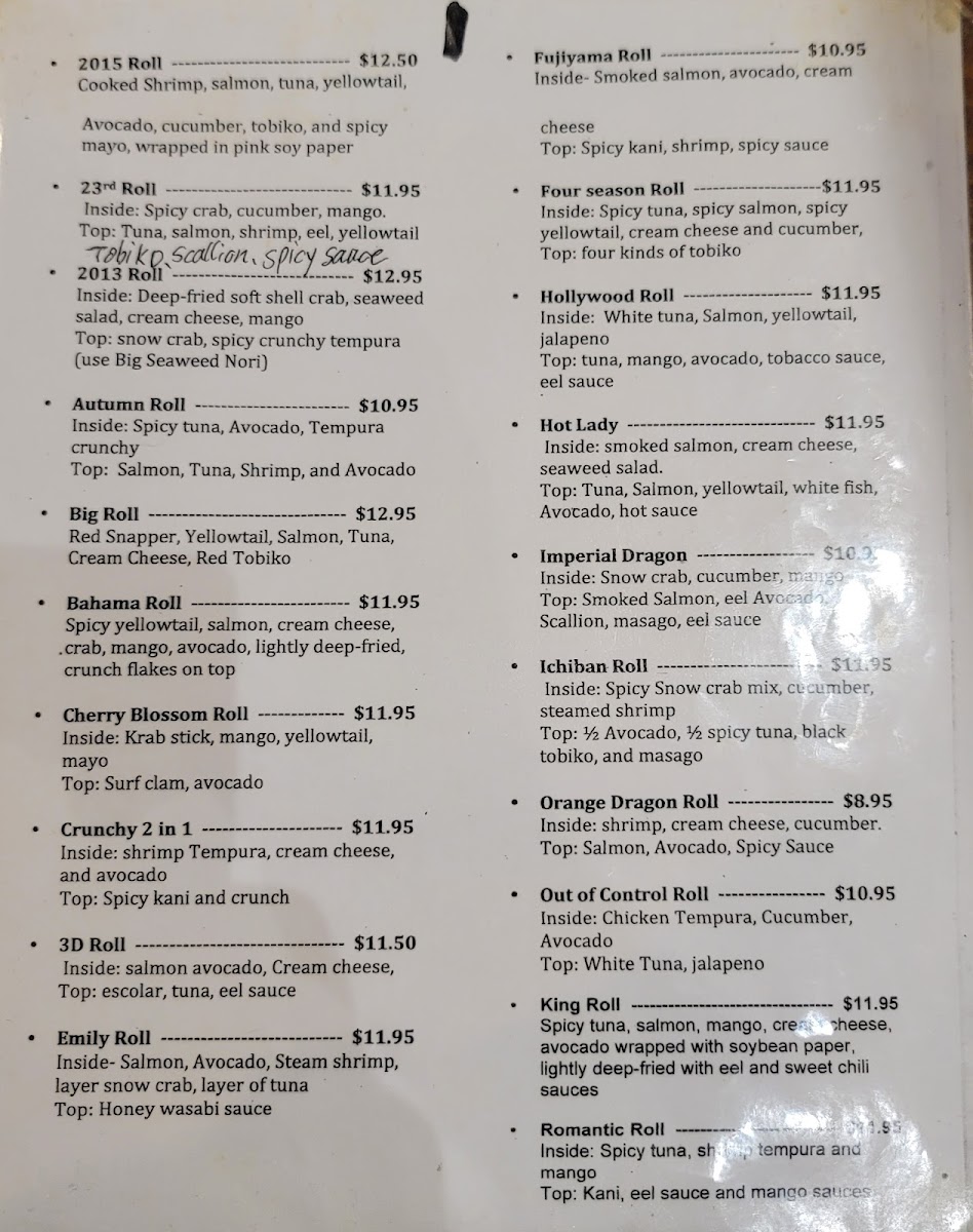 Highlights include a variety of sushi rolls, praised for their freshness and creativity, such as the salmon roe and Alaska roll. Customers rave about the crispy crab rangoon and spring rolls, making it easy to see why Fin's is a beloved destination for both locals and visitors. The exceptional service enhances the experience, ensuring prompt and attentive care from staff, who are eager to guide you through the menu.